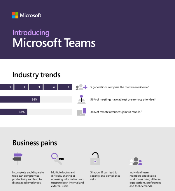 Many modern employees work remotely, and more than half of today’s meetings are attended by at least one remote attendee. This can lead to access, sharing, and compliance issues that threaten to compromise employee productivity and engagement. But Microsoft Teams, the integrated and secure collaboration tool chosen by 91% of Fortune 100 companies, keeps teams connected and compliant.