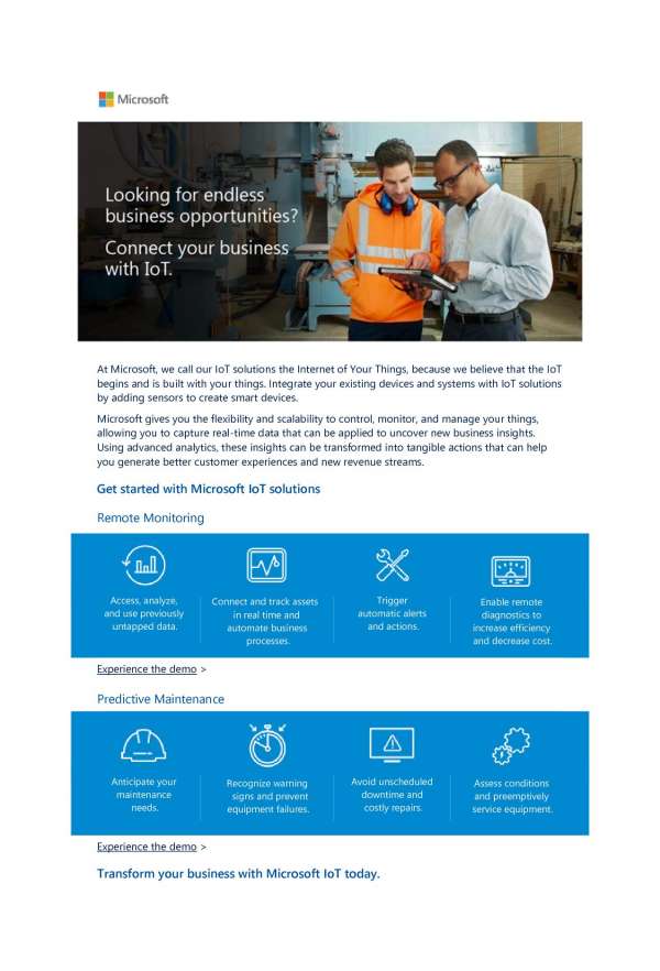 Connect your business with IoT. Get started with Microsoft IoT!