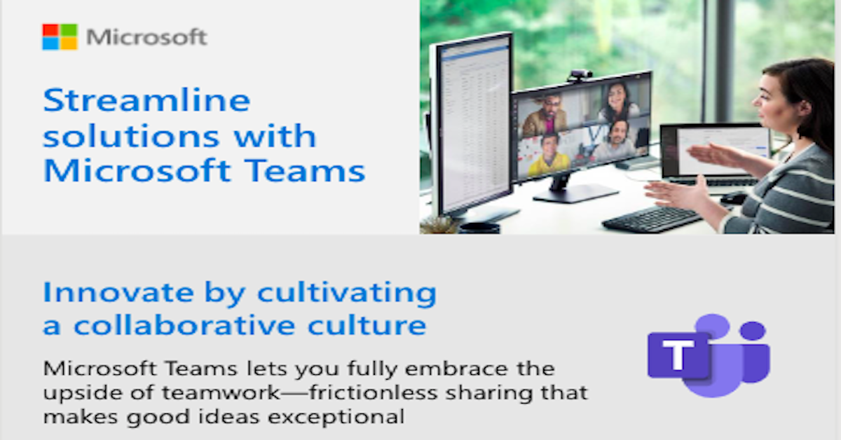 Using Microsoft Teams helps you save time by having all solutions in one place for improved collaboration and information sharing. Foster a collaborative environment and embrace the upside of teamwork – frictionless sharing that makes good ideas exceptional.