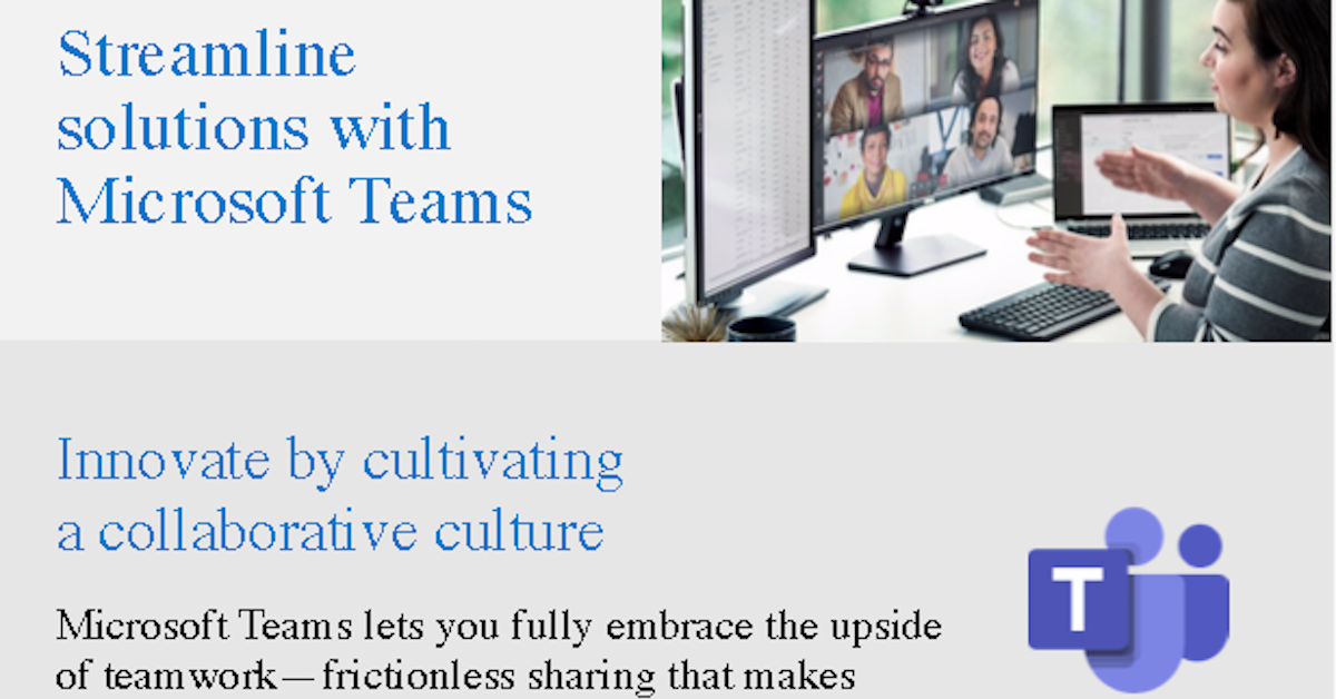 Using Microsoft helps you save time by having all solutions in one place for improved collaboration and information sharing. Foster a collaborative environment and embrace the upside of teamwork – frictionless sharing that makes good ideas exceptional.