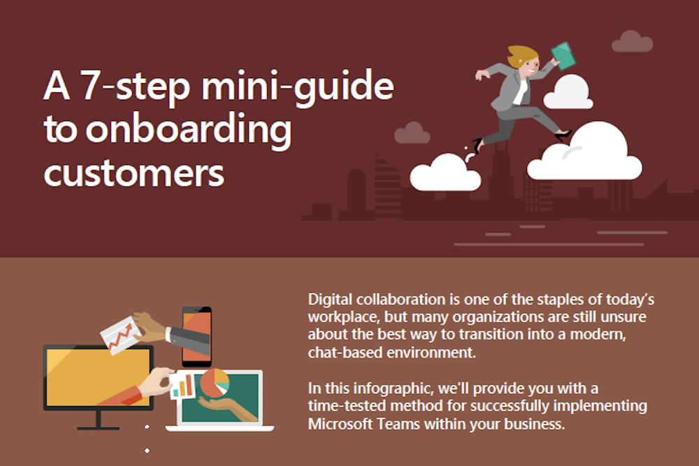 That’s why we’ve created this infographic—to provide you with 7 time-tested steps that can make your customers’ Microsoft Teams adoption as seamless as possible. Use it as a handy cheat sheet for yourself or your sales teams, or bring it along to executive meetings for a visually impactful way of presenting a solid implementation strategy that’s recommended by Microsoft.